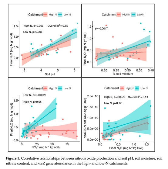 氮富集程度主導(dǎo)NO??累積,土壤pH是N?O排放的最強(qiáng)預(yù)測(cè)因子(正相關(guān))。