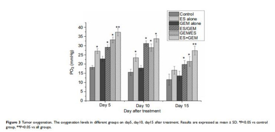 序貫組(ES/GEM、GEM/ES)PO?改善幅度低于同步組(圖3),從機制上解釋為何ES+GEM組抑瘤效果最佳:持續缺氧改善增強吉西他濱遞送與療效。