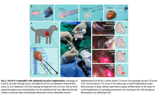數據:iCarP可通過1.2 cm套管針植入犬心臟(圖6a),光照穩定(圖6d)。