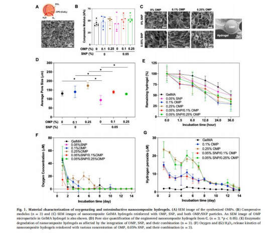 本研究開發了一種基于過氧化鈣(CPO)的產氧微顆粒(OMPs),并將其整合到甲基丙烯?;髂z(GelMA)水凝膠中,用于改善缺氧微環境下人骨髓間充質干細胞(hMSCs)的成骨分化。核心發現包括:
