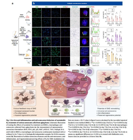 H?的雙重作用:在衰老骨骼細胞中,持續H?供給可同時發揮抗炎和抗衰老效應。