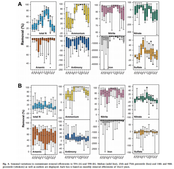 季節(jié)性差異:氮和硫酸鹽的去除效率夏季更高,而砷/銻的去除全年穩(wěn)定(圖4)。