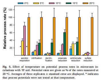 微生物活性:實驗室培養(yǎng)顯示微生物過程(硝化、反硝化、硫酸鹽還原等)在0°C仍持續(xù)發(fā)生,但速率隨溫度降低而下降(圖5)。