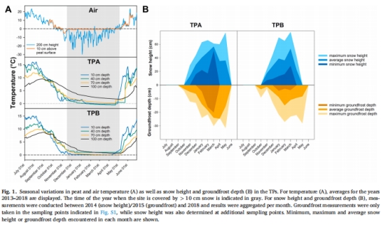 數(shù)據(jù):氣溫(-30°C至24°C)、泥炭溫度(-1°C至16°C)、積雪厚度(>10cm持續(xù)6個月)、凍土深度(TPA達(dá)25cm)。