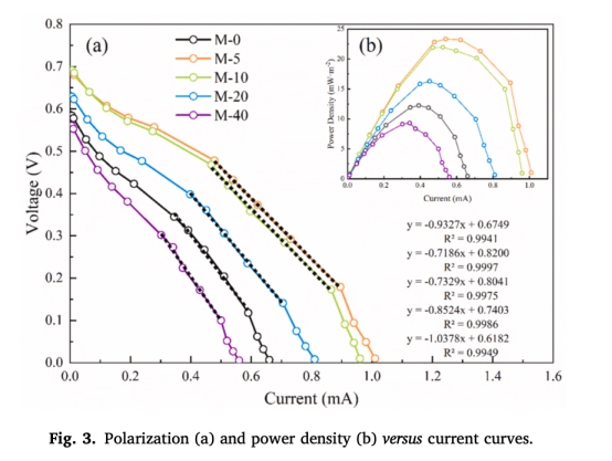 來源:圖2(輸出電壓動態(tài)曲線)、圖3(極化曲線與功率密度)、圖4(循環(huán)伏安曲線)
