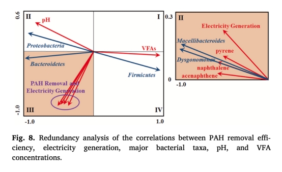 意義:直接量化SMFC修復效果。數(shù)據(jù)表明:淀粉濃度通過改變微生物活性和陽極環(huán)境調(diào)控PAHs降解速率,其中低分子量PAHs(萘)更易去除。