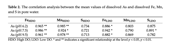 DO主導(dǎo)釋放:低DO環(huán)境砷釋放量顯著高于高DO(上覆水濃度高3.2倍),主因鐵錳氧化物還原溶解(Fe/Mn與As濃度顯著正相關(guān),表2)。