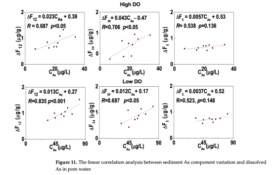 意義:低DO下可交換態(tài)砷(F1+F2)占比升至26.7%,鐵錳氧化物結(jié)合態(tài)砷(F3+F4)減少9.2%,明確釋放源為鐵錳氧化物還原溶解(圖11)。