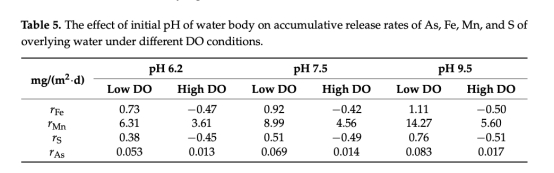 意義:低DO+pH 9.5組砷釋放速率最高(0.083 mg/(m2·d)),量化多因子協(xié)同效應(yīng)。
