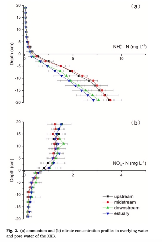 研究意義:揭示沉積物有機氮礦化釋放NH??、NO??在沉積界面耗竭的規(guī)律,證實下游湍流增強促進(jìn)氮礦化和釋放,為內(nèi)源污染機制提供證據(jù)。