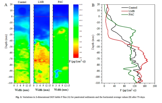 實驗設計:采集巢湖河口完整沉積物柱樣,分為對照組、LMB處理組(0.79 g/cm2)、PAC處理組(0.16 g/cm2),模擬75天原位鈍化。