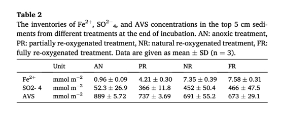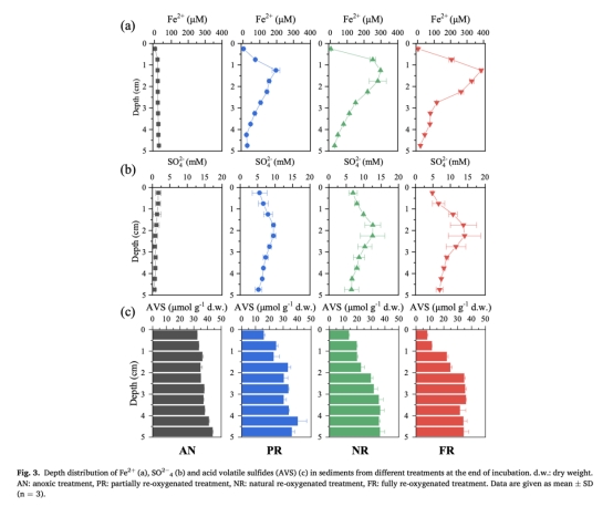 意義:闡明e-SOx對硫鐵循環(huán)的間接影響。FR組孔隙水SO?2?庫(466 mmol m?2)是AN組的8.9倍,說明高氧促進(jìn)電纜細(xì)菌驅(qū)動(dòng)的硫酸鹽再生。