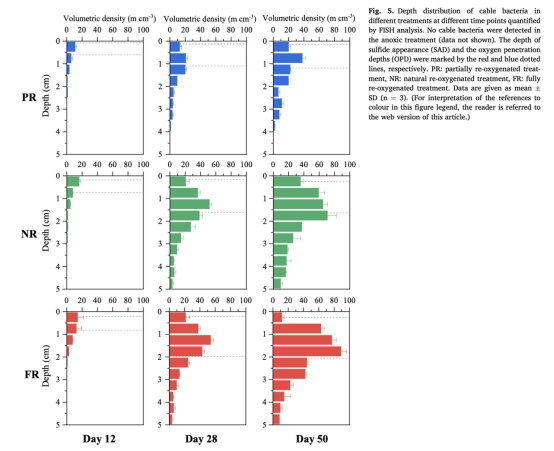 數(shù)據(jù)來源:圖4a(電纜細(xì)菌密度時(shí)序變化)、圖4b(相對豐度)、圖5(垂直分布)。