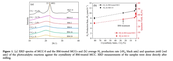 開發(fā)高效預(yù)處理策略提升纖維素光催化重整制氫效率,闡明球磨誘導(dǎo)的纖維素結(jié)構(gòu)變化(如無定形化、重結(jié)晶)與制氫性能的構(gòu)效關(guān)系。