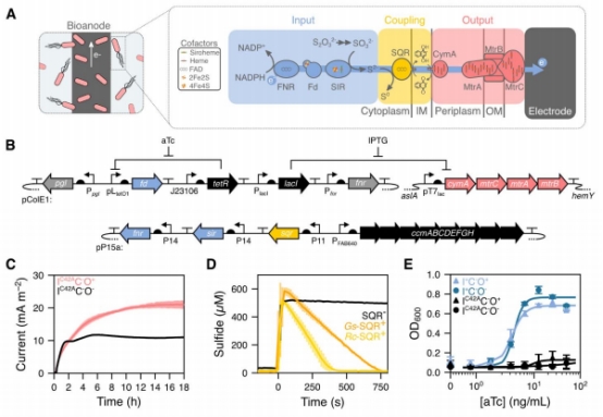 開發了一種基于合成生物學與材料工程的實時生物電子傳感器,通過編程大腸桿菌構建化學門控電子傳遞鏈: