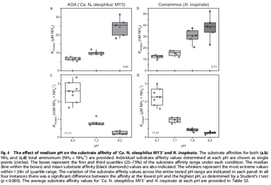 高親和力組(Km(app)≤0.025 μM):Nitrosopumilales(如海洋菌N. maritimus);