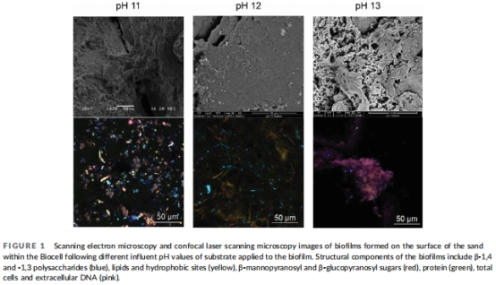 論文探究了堿性生物膜(pH 11.0–13.0)的生存機制與群落演化。關鍵發(fā)現(xiàn)包括: