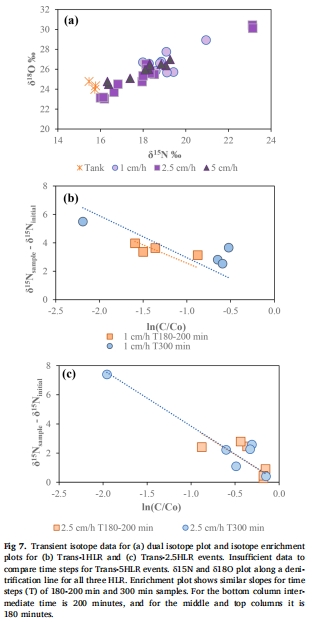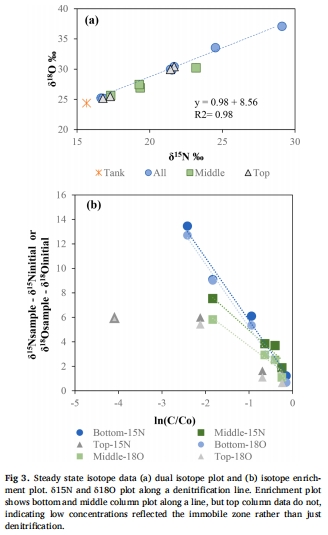同位素證據(jù):δ1?N和δ1?O線性關(guān)系(斜率0.5-1.0)證實(shí)脫氮發(fā)生(圖3a,7a)