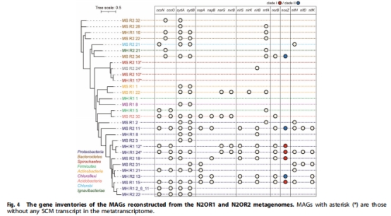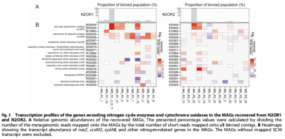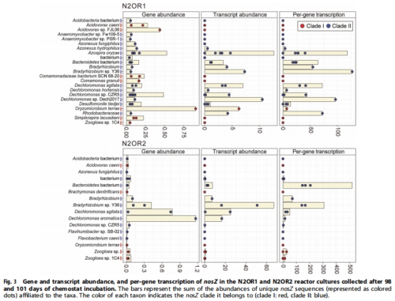 基因豐度:NosZG5(clade II)在N?OR2反應(yīng)器占比86.8%