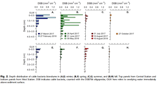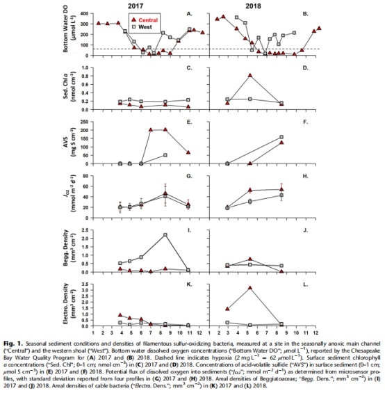 季節(jié)性缺氧切薩皮克灣海洋電纜細菌和 Beggiatoaceae 季節(jié)和空間分布的對比控制