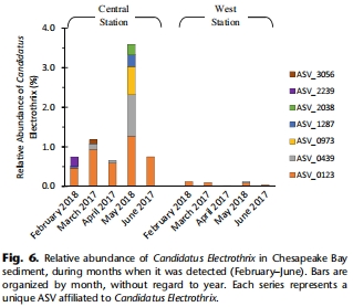 研究對比了切薩皮克灣兩種硫氧化細菌的季節(jié)性分布規(guī)律: