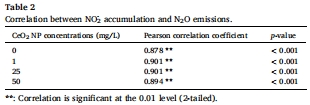 50 mg/L CeO? NPs使N?O排放量顯著增加3.6%(表1),證明納米顆粒對溫室氣體排放的刺激效應(yīng)。