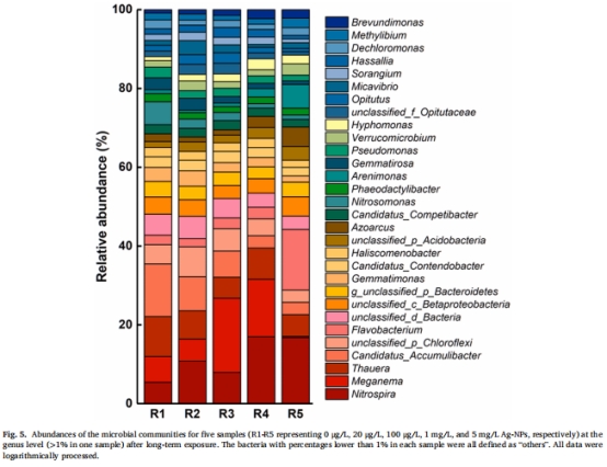 研究意義:證實高劑量Ag-NPs抑制硝化菌(如Nitrosomonas↓80%),導致氨積累(圖5),為后續N?O途徑轉變提供基礎。