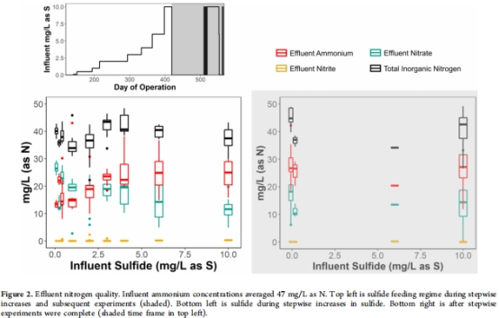 氨氮積累:硫化物使出水NH??從15 mg N/L升至27 mg N/L(圖2右)。