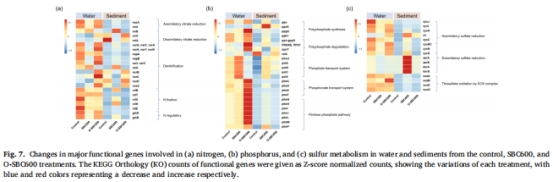 微生物響應:水體細菌多樣性(Shannon指數)提升5.05%,硝化螺菌(Nitrospira)豐度增加10倍,同時富集了N?O還原(nosZ)、聚磷酸鹽代謝等功能基因(圖6-7)。