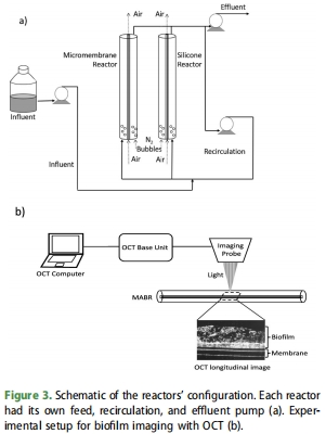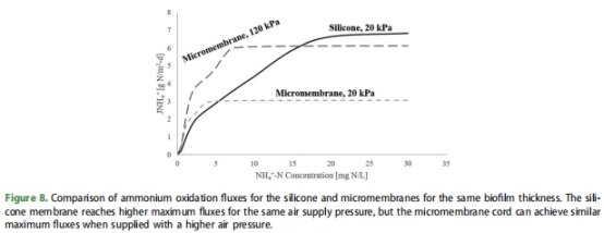 本文對比了兩種商用MABR膜(硅膠中空纖維膜與SUEZ的微膜束)對硝化生物膜行為的影響: