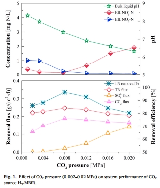 論文探討了 CO?壓力(0.002–0.016 MPa) 對氫氣膜生物膜反應(yīng)器(H?-MBfR)脫氮性能的調(diào)控機(jī)制。核心發(fā)現(xiàn)包括: