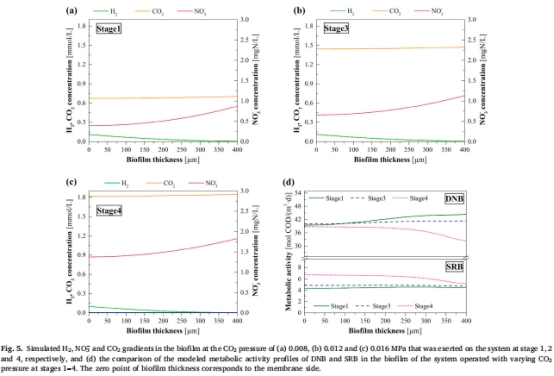 支撐生物膜H?梯度模擬(圖5a-c):揭示生物膜外層(0–100 μm)H?充足,深層(>300 μm)因擴(kuò)散限制可能匱乏。