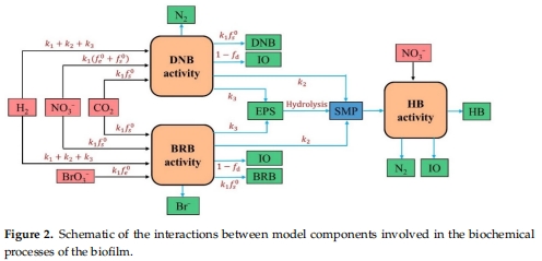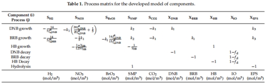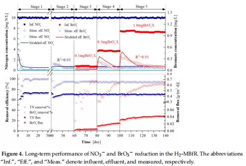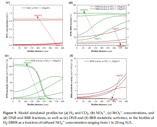 同時還原溴酸鹽和硝酸鹽的氫基膜生物膜反應器中微生物代謝過程的模型評估