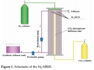 安裝位點:H?-MBfR反應器內,直接插入生物膜/液相界面(圖1)。