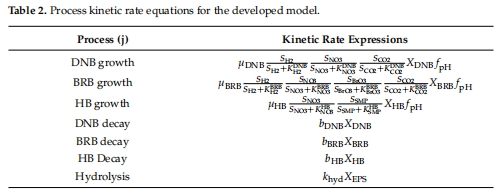 擴展多物種生物膜模型(圖2),包含BRB、DNB、EPS等10種組分(表1)及其代謝動力學方程(表2)。