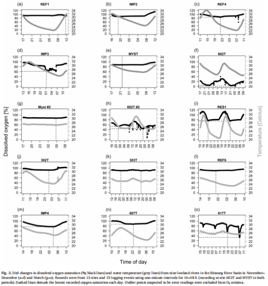 DO是核心脅迫因子:污染通過提升分解速率和呼吸耗氧,導致熱帶河流DO赤字(尤其夜間),高溫(平均26°C)加劇該效應。
