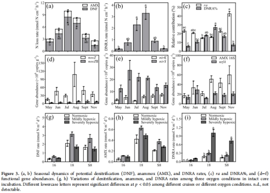 闡明脫氧對硝酸鹽還原路徑的影響:量化季節性脫氧期間反硝化、厭氧氨氧化和DNRA的參與度與動態變化。