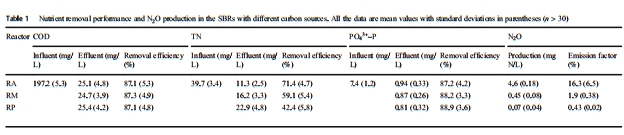 N?O減排效果:丙酸鹽系統(tǒng)(RP)的N?O排放因子僅為0.43%,顯著低于乙酸鹽系統(tǒng)(RA)的16.3%和混合碳源系統(tǒng)(RM)的1.9%(表1)。