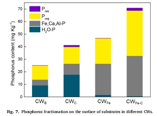 CWFe-C中穩(wěn)定態(tài)磷(Fe,Ca,Al-P + Porg)占比96.2%,對照組H?O-P為主(不穩(wěn)定)。