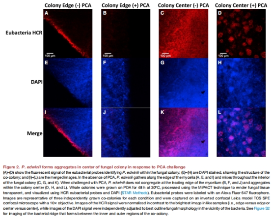 P. edwinii保護(hù)Aspergillus fumigatus(人類病原體)和Fusarium(植物病原體)免受PCA抑制(圖6E, G)。