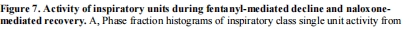 核心發現:芬太尼誘導的呼吸暫停(apnea)中,吸氣神經元(inspiratory neurons)活動顯著抑制(78%完全沉默),而呼氣神經元(expiratory neurons)雖放電頻率降低但仍維持緊張性放電(79%持續活動)。