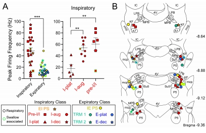 吸氣類:78%在呼吸暫停中沉默,I-aug和pre-I/I放電頻率顯著降低(Δ=53.2 Hz, p<0.0001)。