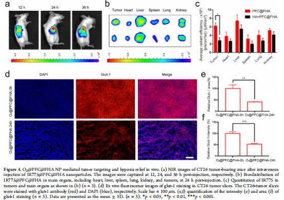 首創FHA封裝PFC的靶向氧載體,實現緩釋、腫瘤特異性遞送。