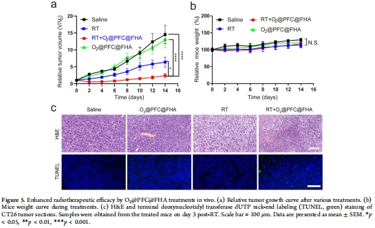 抑瘤率:RT + O?@PFC@FHA組腫瘤體積抑制率85%(vs RT組30%)。