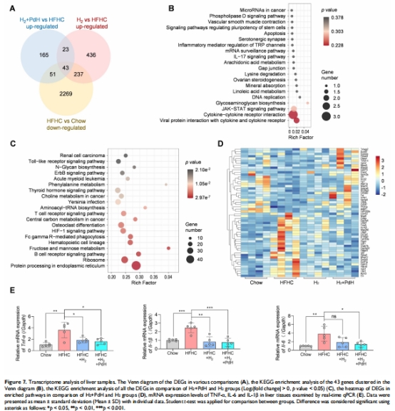 轉錄組:Pd+H?組激活脂代謝通路(PPARα/FXR),抑制炎癥通路(JAK-STAT)(圖7C-D)。