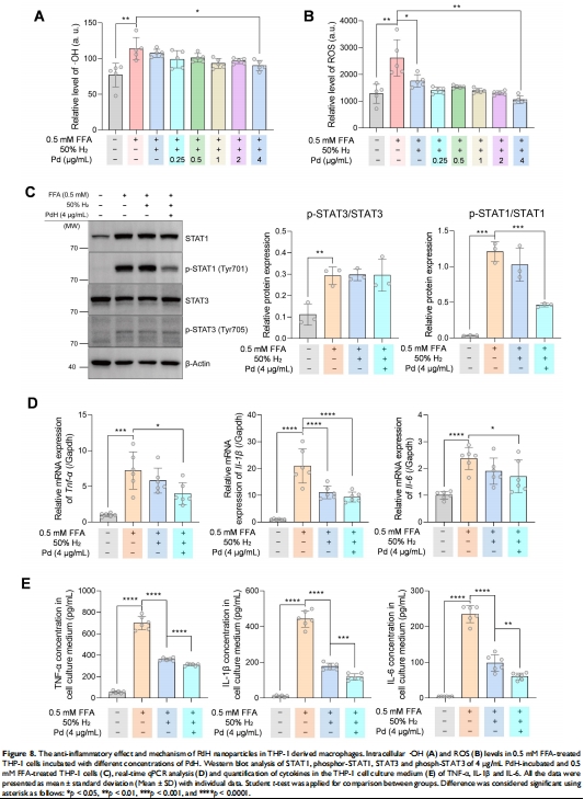 在FFA誘導的THP-1巨噬細胞中,PdH+H?使細胞內ROS降低60%(圖8A-B)。