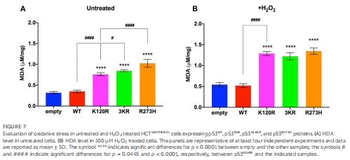 氧化應激響應缺陷:所有p53突變體(K120R/3KR/R273H)均導致脂質過氧化(MDA升高),且抗氧化響應(如xCT蛋白)不足以抵消損傷(圖7-8)。