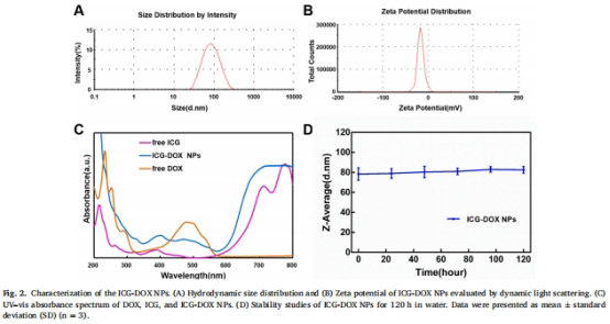ICG-DOX NPs:通過(guò)自組裝形成納米粒(粒徑77nm,圖2A)。