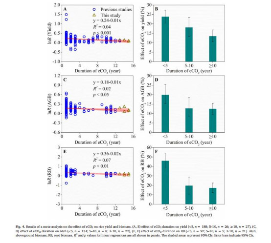 整合101篇文獻的795組數據,量化eCO?持續時間對排放、水稻生物量及微生物基因的效應。