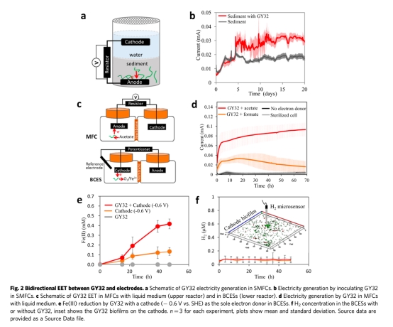 ? 液體MFC測試雙向EET(陽極產(chǎn)電/陰極還原)(圖2d,e)
